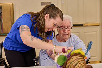 For individuals with memory loss, an important part of a personalized care plan focuses on active social and cognitive engagement. Cognitively appropriate activities play an enormous role in enhancing the quality of life for Safe Haven residents. We have a full calendar of activities that keep our memory care residents socializing and entertained. We also have a Cantor on staff that conducts weekly religious services as well as teaches a weekly “Jewish Wisdom” class. And our Safe Haven neighborhood celebrates all the Jewish holidays. That cultural connection brings many of our residents a sense of comfort and belonging.